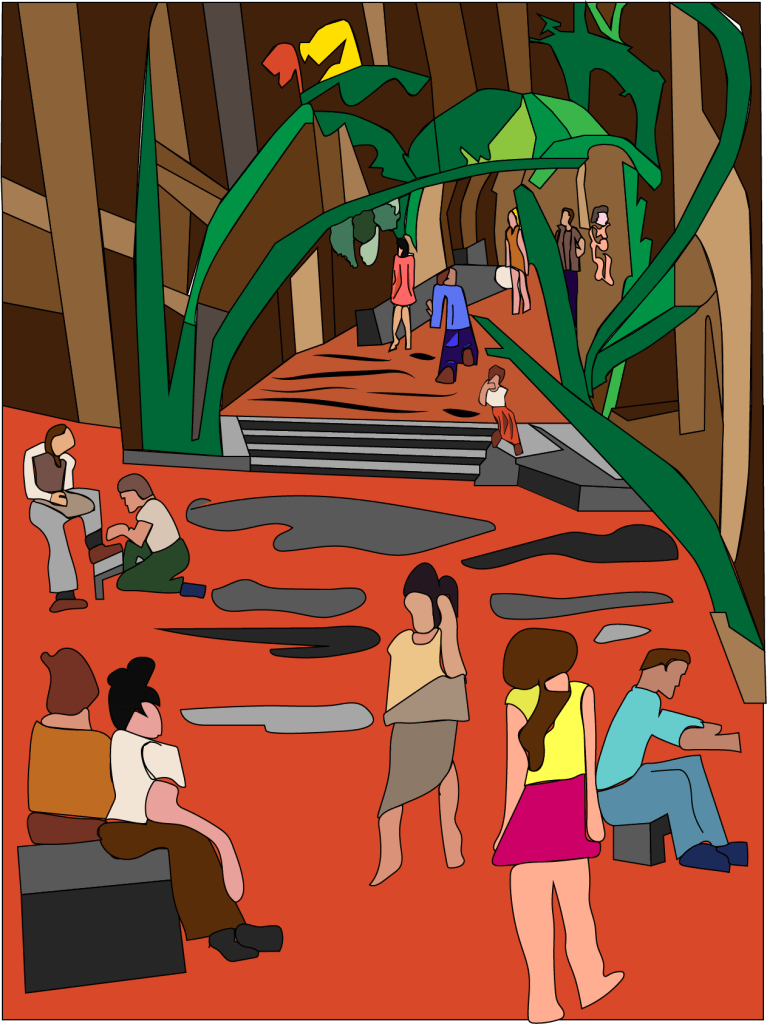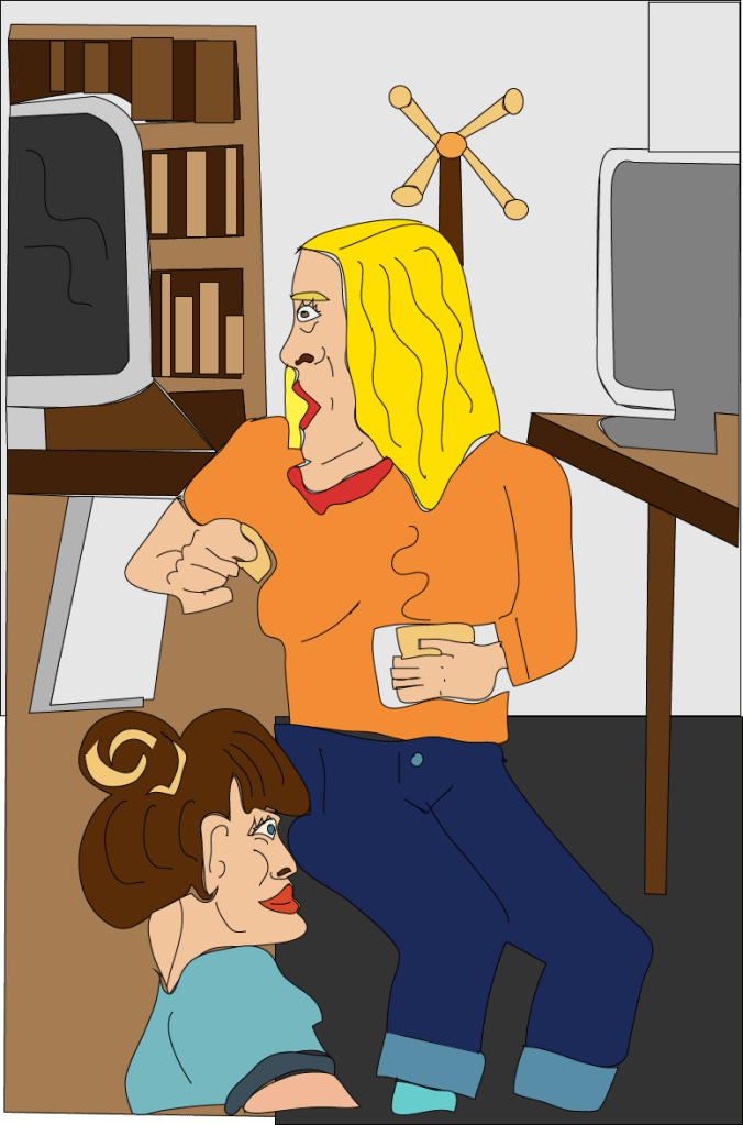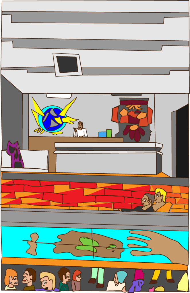 En mi trabajo, quise ponerle paralela atención como descanso académico, al imaginario de los muertos vivientes y creo que esa narrativa en inglés tiene su encanto. Ahora toca turno a la exhibición de los dibujos ilustrados con el tratamiento de los colores que ofrece el sistema digital.