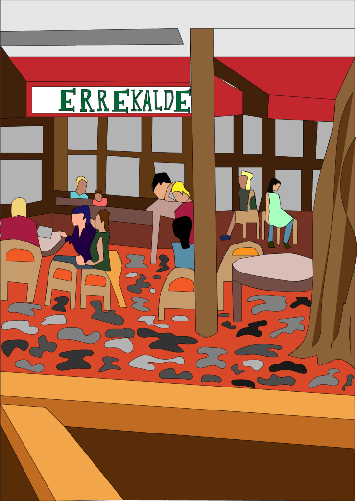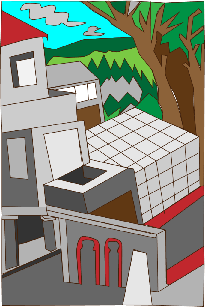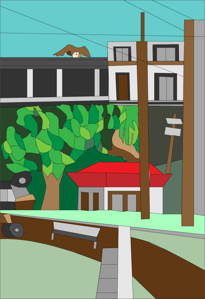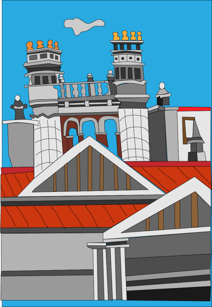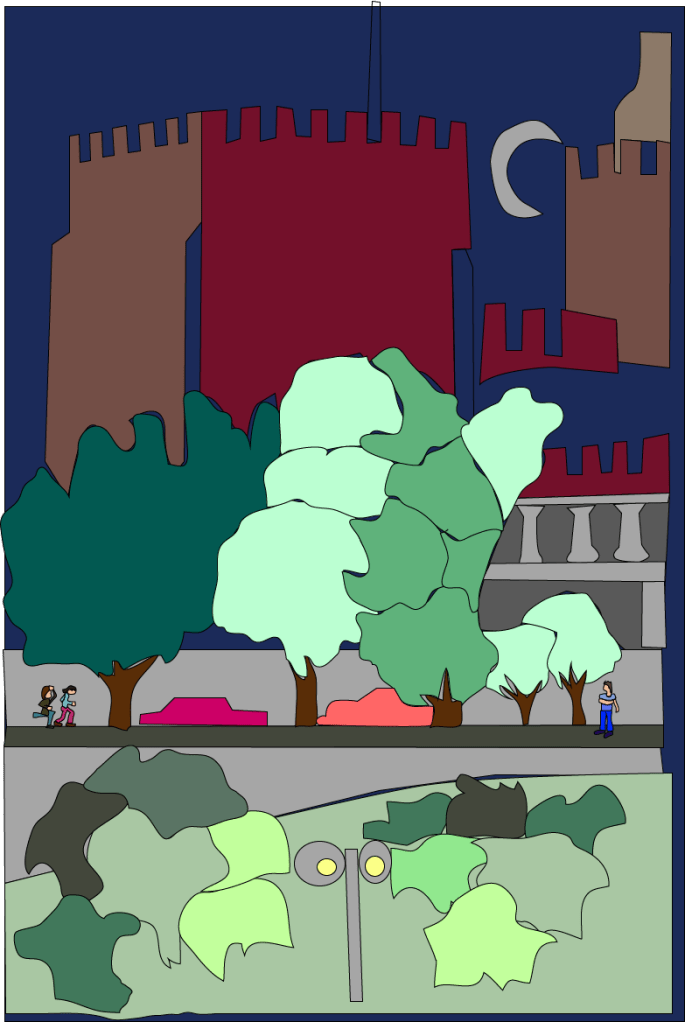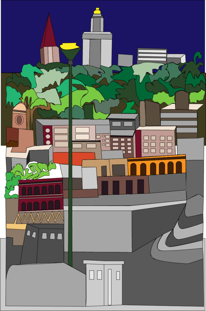 El trazo inspirado en el paisaje europeo intervenido por Illustrator como complemento de un libro de cuentos que explotan los conceptos del universo de los zombies posmodernos.