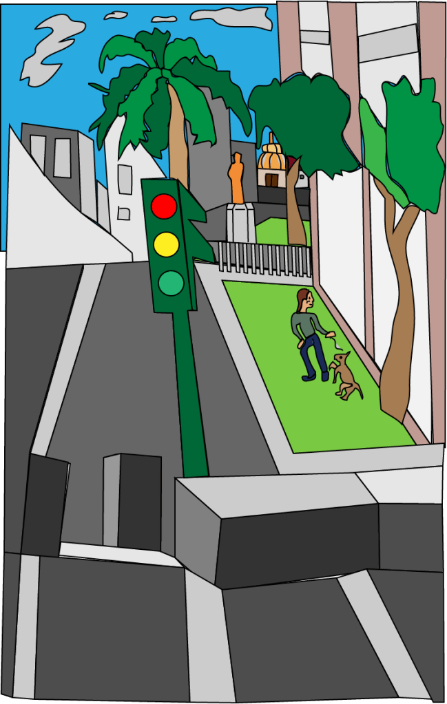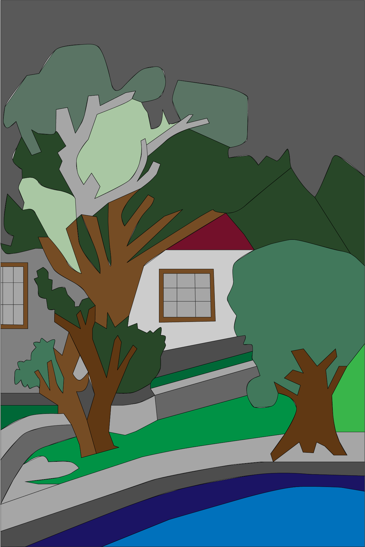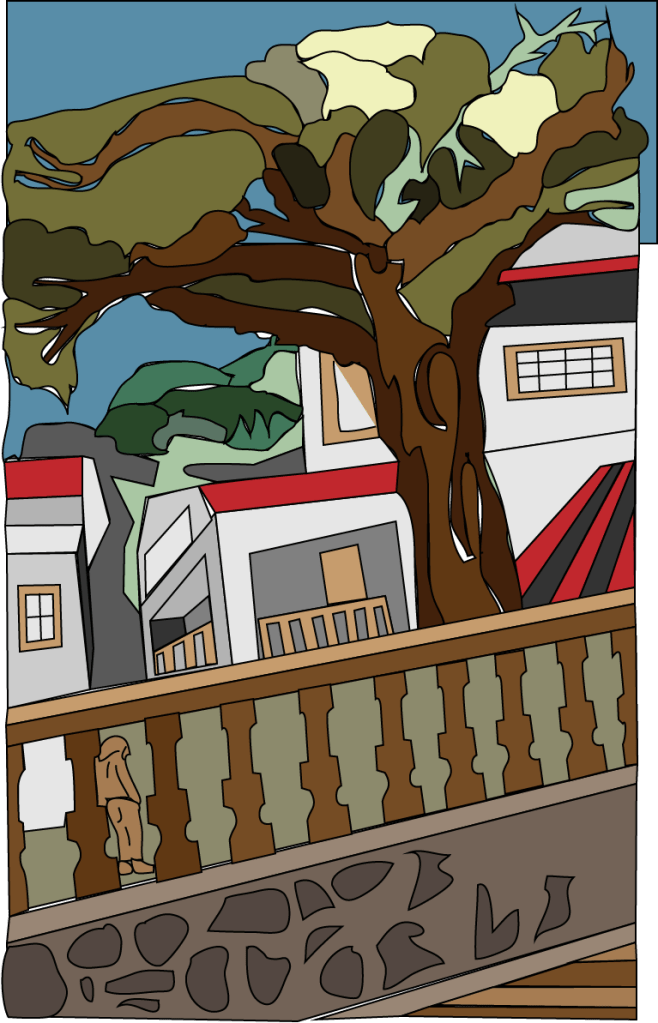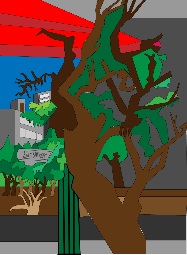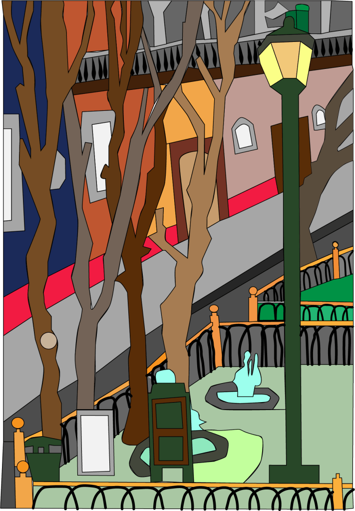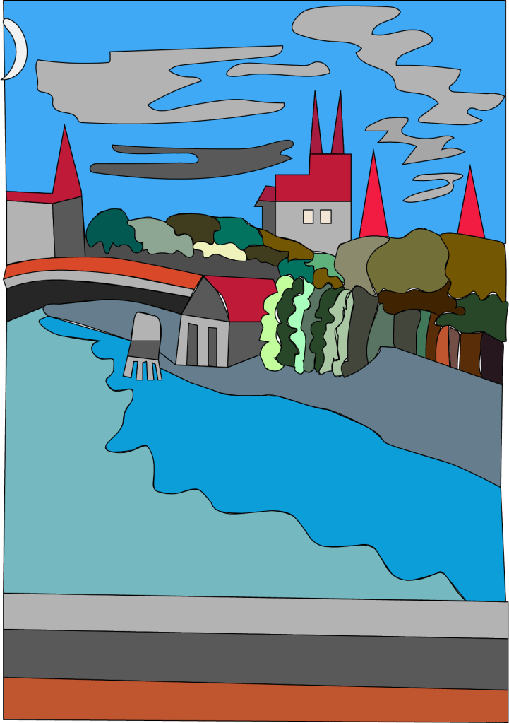 El trazo inspirado en el paisaje europeo intervenido por Illustrator como complemento de un libro de cuentos que explotan los conceptos del universo de los zombies posmodernos.