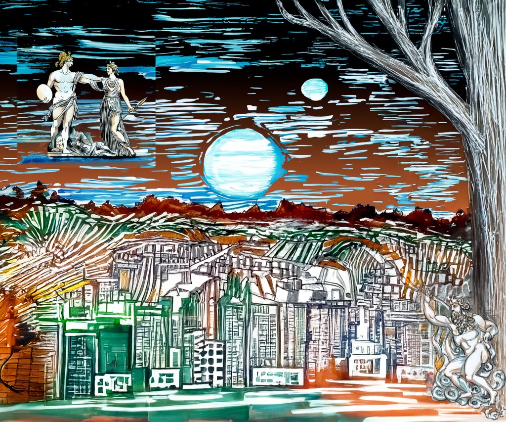 At request the user buys a higher resolution digital painting that can be expressed in a canvas with the intervention of a third party. The client gets the image by e-mail and may decide to print in a poster instead or use it for other objectives.